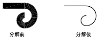 分解後のオブジェクトの色、線種、線の太さが変わることがあります。その他の結果は、分解する複合オブジェクトのタイプによって異なります。分解可能なオブジェクトと、それらのオブジェクを分解した結果を次に示します。