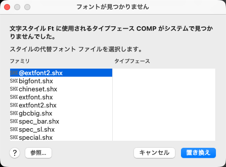 フォント ファイルが見つからない図面を開いた場合、このダイアログ ボックスが表示され、スタイルの代替フォント ファイルを選択できます。