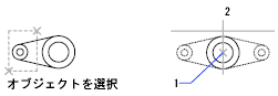 オブジェクトの選択方法を使用して、鏡像化するオブジェクトを選択します。[Enter]を押して終了します。