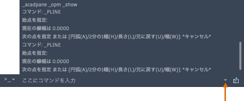 別のウィンドウを開かずに、拡張コマンド ヒストリを表示することもできます。拡張コマンド ヒストリを表示するには、[F2]キーを押すか、コマンド ラインの右端にあるコントロールを使用します。