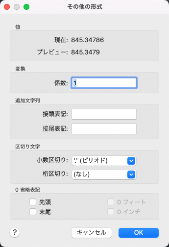 現在の値で使用する変換係数を指定します。既定は 1 で、変換されません。