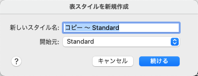 新しい表スタイルの名前を指定し、新しい表スタイルのベースとなる既存の表スタイルを指定します。