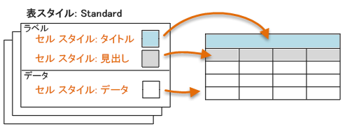 既定の表スタイル Standard には、Title、Header、Data の 3 つの既定のセル スタイルが含まれています。Title と Header セル スタイルはセルの[ラベル]タイプですが、データ セル スタイルはセルの[データ]タイプです。