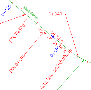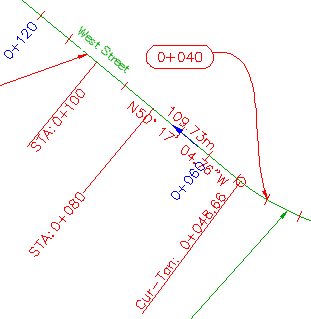 変更後のドラッグ状態: 主測点ラベル 0+040