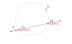 2 つの図形が交差する位置、または延長すると交差する位置でポイントによる補間を行うことができます。