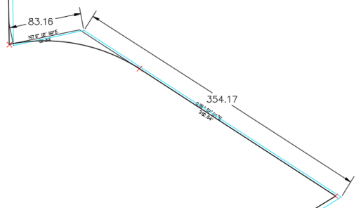 この設定は調整の際にトラバースの曲線データをどのように表すかを定義します。曲線自体は調整できないため、トラバースに線を追加して曲線を表し、曲線を除去します。線を弦全体に追加するか、曲線 PI に追加するかを指定できます。