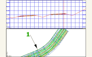 複数の基線を使用してモデリングされた複雑なコリドーを表示することもできます。コリドーの測点を順番に調べることも、特定の測点にジャンプすることもできます。