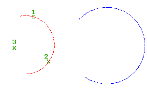 曲線が強調表示され、円弧の始点、中心点および終点に記号が表示されます。
