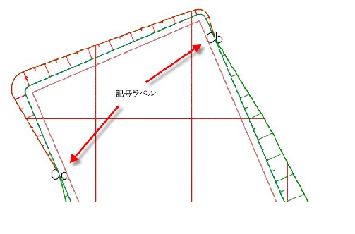 [記号ラベル] を選択すると、不規則な形状のセルがある場所に記号が挿入され、関連するポイントの情報が図面内のテーブルに格納されます。