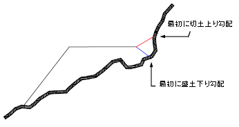 注: 技術的には、これらの状況はどちらも“盛土”です。しかし、Autodesk Civil 3D では、上り勾配方向は切土、下り勾配方向は盛土として扱われます。