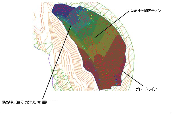 標高解析の勾配矢印を示すサーフェス