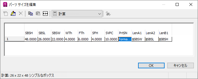 - 計算値で次のようにパーツ サイズ名を定義します。