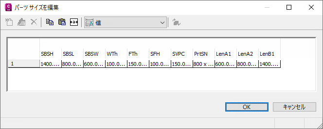 - パーツの新しいサイズを追加するには、パラメータ値をクリックし、ツールバーで[編集]をクリックします。