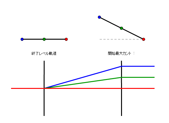 次の図は、単線線路の高い側の軌道の基点設定方法を示しています。
