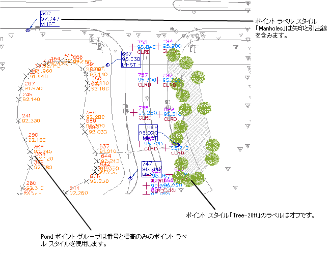 事前に定義されたラベル付けの基準を使用して、図面上にポイントを作成したときに、自動的にポイントにラベル付けできます。
