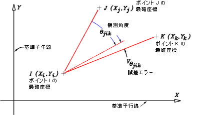 次の図に、角度観測計算式のジオメトリを示します。