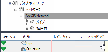 ArcGIS データを図面に取り込むときにパイプ ネットワークのスキーマ マッピングを設定するには