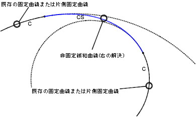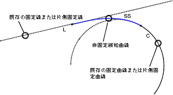 固定図形または片側固定図形に非固定緩和曲線を追加します。