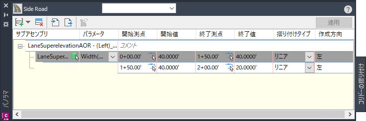コリドーの摺り付けを作成および編集するには、コリドーの摺り付けパノラマ ビスタを使用します。