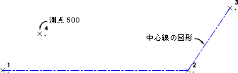 中心線から外れたポイントを使用して開始測点を指定した場合、垂線が設定され、その交点が開始測点となります。このため、開始測点を設定するために使用するポイントは、中心線の脚に接する必要があります。