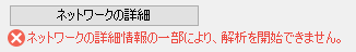 選択した解析タイプを実行できない場合は、[自然流下式ネットワークの解析]ダイアログ ボックスの[一般]ページの[ネットワークの詳細]ボタンの下にエラー メッセージが表示されます。