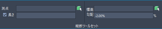 測点および標高を使用して最初の点を指定した後、[長さ]や[勾配]などの[縦断ツールセット]タブの他のオプションを使用して、引き続き縦断図形を描画できます。
