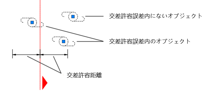 [交差オプション]オブジェクトを交差として表示するためにオブジェクトが存在しなければならない横断抽出ラインからの距離を指定します。