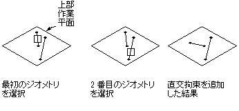 方向を持つジオメトリのペア間で定義できます。選択された線分を互いに直角に配置します。