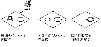 複数の円とポイントの組み合わせに対して定義できます。ジオメトリの中心点を同じ場所に固定します。一般に、円と円(両方の円の中心点が同じ)、円とポイント(ポイントが円の中心に存在する)、ポイントとポイント(両方のポイントが同じ)の間で使用します。