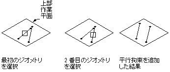 方向を持つジオメトリのペア間で定義できます。2 本以上の線分を互いに平行にします。