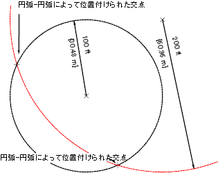 交点は、ポイント 1 を中心とする半径 100 の円弧と、ポイント 2 を中心とする半径 200 の円弧の間に配置されます。