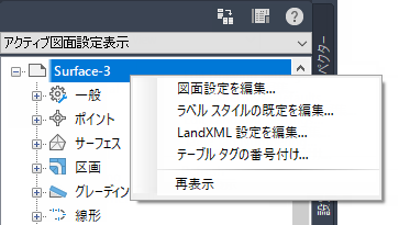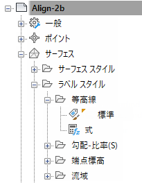 ラベル設定は、図面レベル、オブジェクト レベル(サーフェスなど)、およぴラベル スタイル タイプ レベル(等高線など)で編集することが可能です。