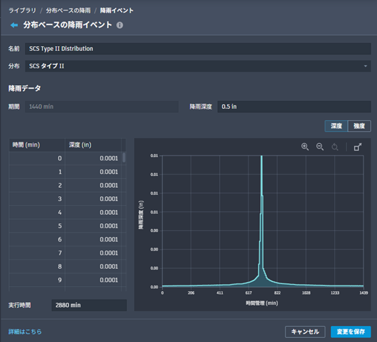 - [降雨を作成]をクリックして、分布ベースの降雨セットを保存します。降雨リストに、新しい降雨セットが表示されます。