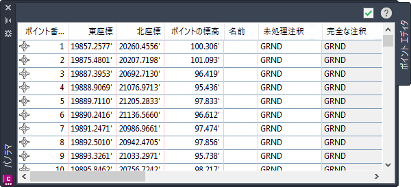 [パノラマ]ウィンドウに表示されるデータ ビューは、ビスタと呼ばれます。[パノラマ]ウィンドウでは、[ポイント エディタ]ビスタや[線形図形]ビスタなどの複数のタイプのデータを表示できます。