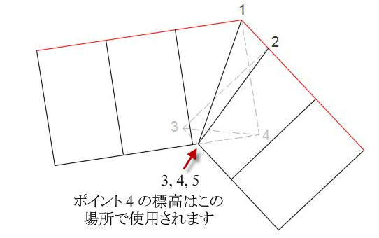 ポイント 3 とポイント 4 がポイント 5 の位置に移動し、その位置でポイント 4 の標高が使用されます。ポイント 1 とポイント 2 の位置と高さは変更されません。
