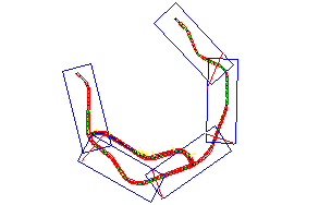 作成したビュー フレームは、平面/縦断または平面のみのシートに表示される線形に沿った長方形の領域として表示されます。