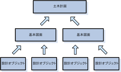 すべてのプロジェクト構造に共通するベスト プラクティスは、線形やサーフェスなどの個別の設計オブジェクトを別々の図面に編成することです。 設計プロセスでは、これらのオブジェクトの参照先がベース図面になります。包括的な土木計画および最終製作図面は、オブジェクト参照と図面参照を合わせて一緒に用意します。