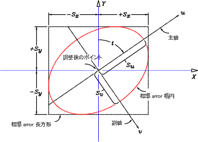 最小二乗法による調整が完了したら、共分散マトリックスを使用して位置標準偏差 と を計算します。