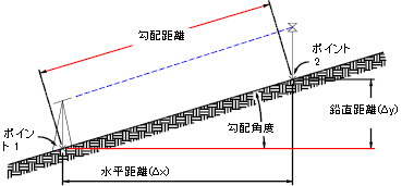 [勾配距離]コマンドを使用すると、2 点間の勾配距離を調べることができます。