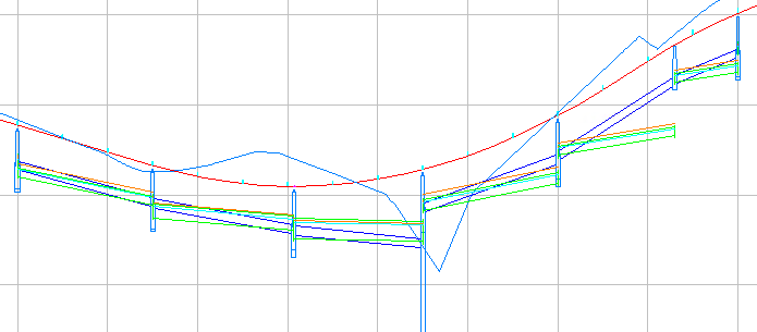 次の図では、既存のパイプ ネットワークが縦断ビューで表示されています。