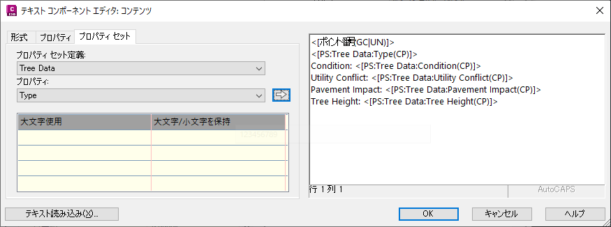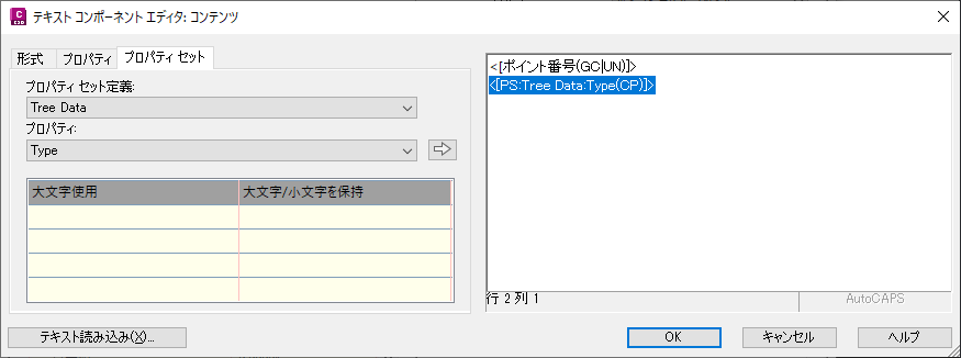- [テキスト コンポーネント エディタ]ダイアログ ボックスで、[プロパティ セット]タブをクリックします。