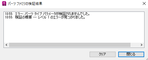 パーツが無効な場合に表示されるエラーのダイアログ ボックス