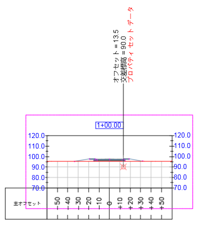 プロパティ セット データを交差ラベル スタイルに含める場合は、横断ビューで交差位置が表示されているオブジェクト タイプに加えて、[交差横断ラベル]オブジェクト タイプを選択する必要があります。