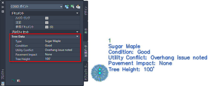 このラベルでは、次の樹木データのプロパティ セット定義が使用されています。