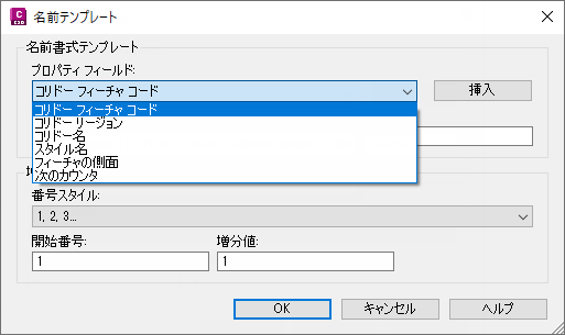 をクリックして、[名前テンプレート]ダイアログ ボックスを開きます。