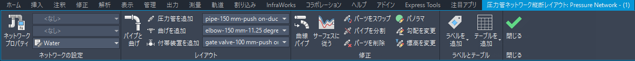 注: [圧力管ネットワーク レイアウト]リボンにアクセスするには、圧力管ネットワークが