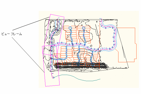 線形のセグメントを表示するために、レイアウトで多数のビューポートを手動で作成する代わりに、事前定義された線形上の領域を自動的にキャプチャするビュー フレームを作成することができます。ビュー フレームは、線形に沿って作成される長方形の領域で、作成するレイアウト(シート)に関連付けられたビューポートに表示する内容を表します。この自動化により、設計データを変更する際に、大量の変更を手動で行う手間が省けます。