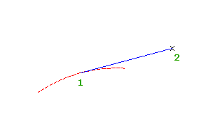 図は、既存の終点(1)から最適フィットで作成された片側固定縦断接線を示します。X は、図形の作成に使用されたデータ ポイントを示します。