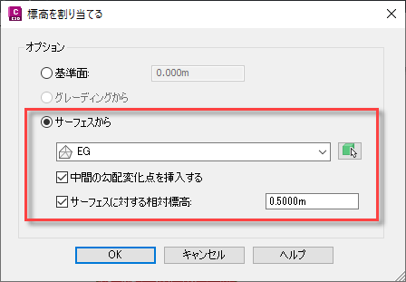 - [計画線を作成] ダイアログ ボックスで、 [標高を割り当てる] チェック ボックスをオンにし、 [OK] をクリックします。