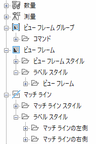 次の図には、[設定]ツリーに表示されたビュー フレーム コレクションとマッチ ライン コレクションが示されています。